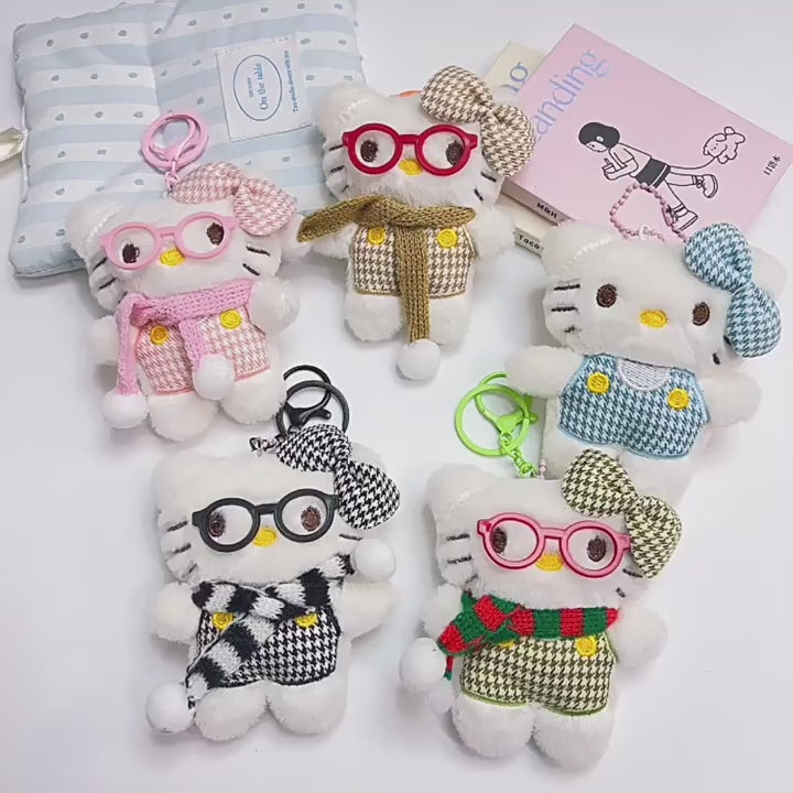 Add a touch of kawaii charm to your everyday essentials with this adorable Hello Kitty plush keychain π. Designed with stylish glasses, cozy scarves, and soft plush fabric, this cute kitty charm is perfect for decorating your bags, keys, backpacks, or even as a collectible toy.